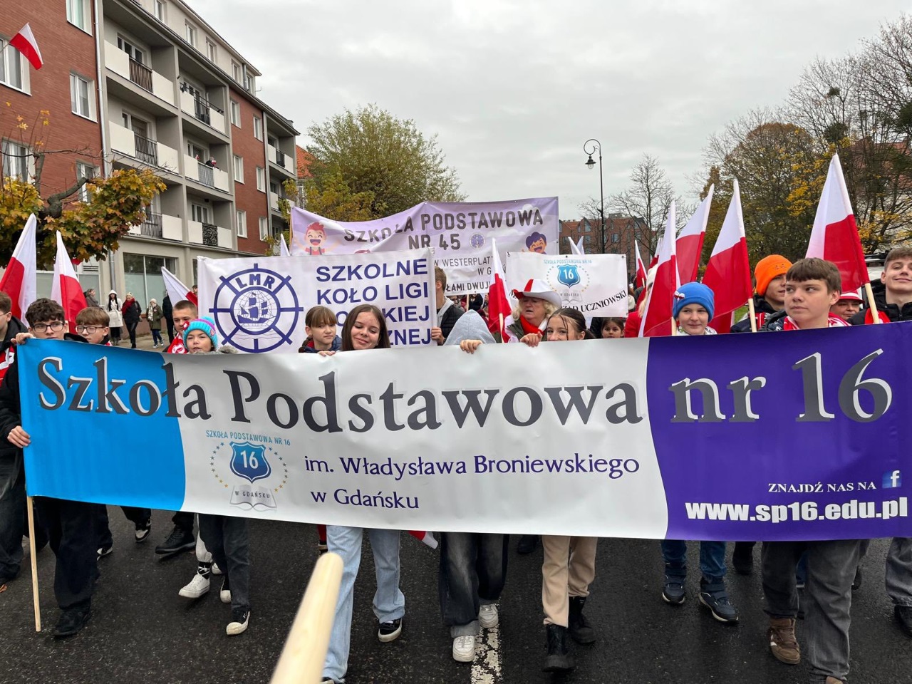 zniowie SP16 wraz z nauczycielami wzięli dumnie udział w paradzie