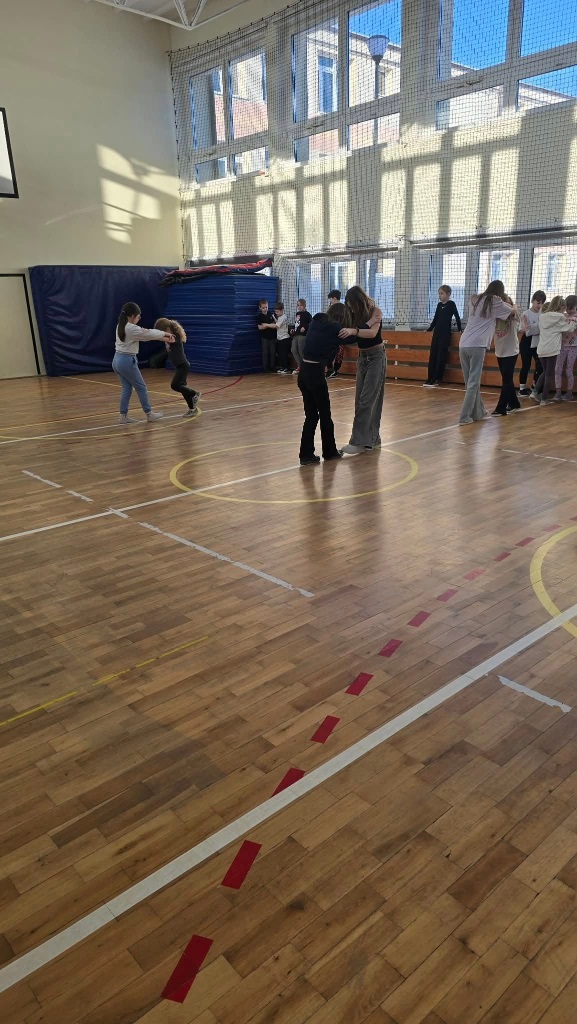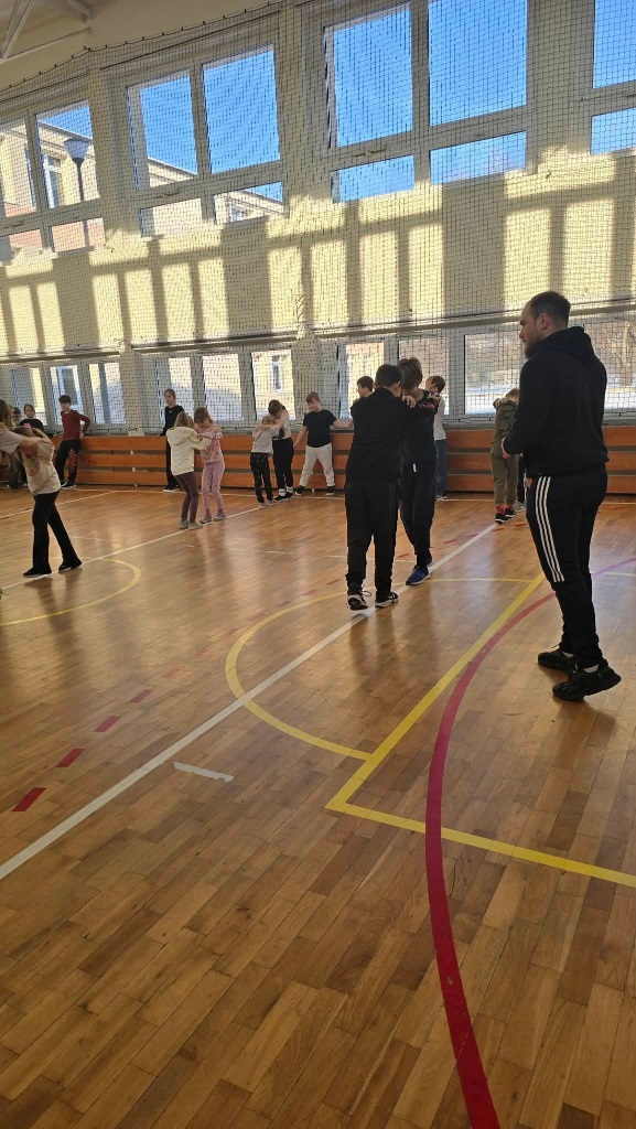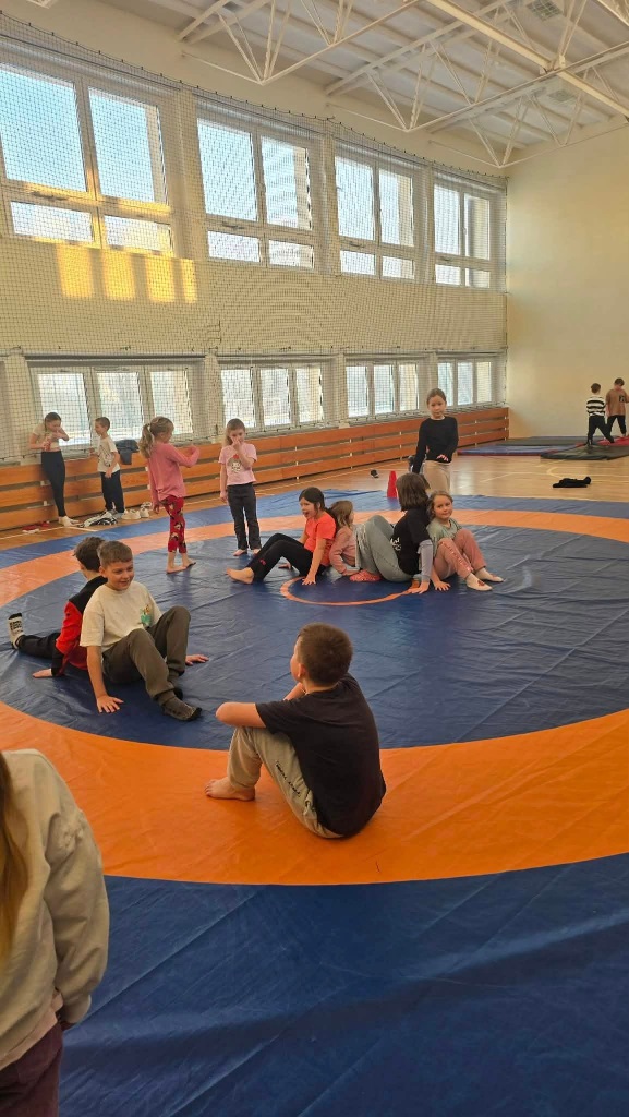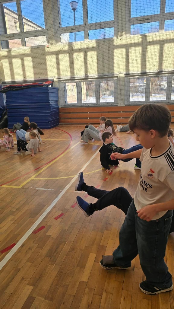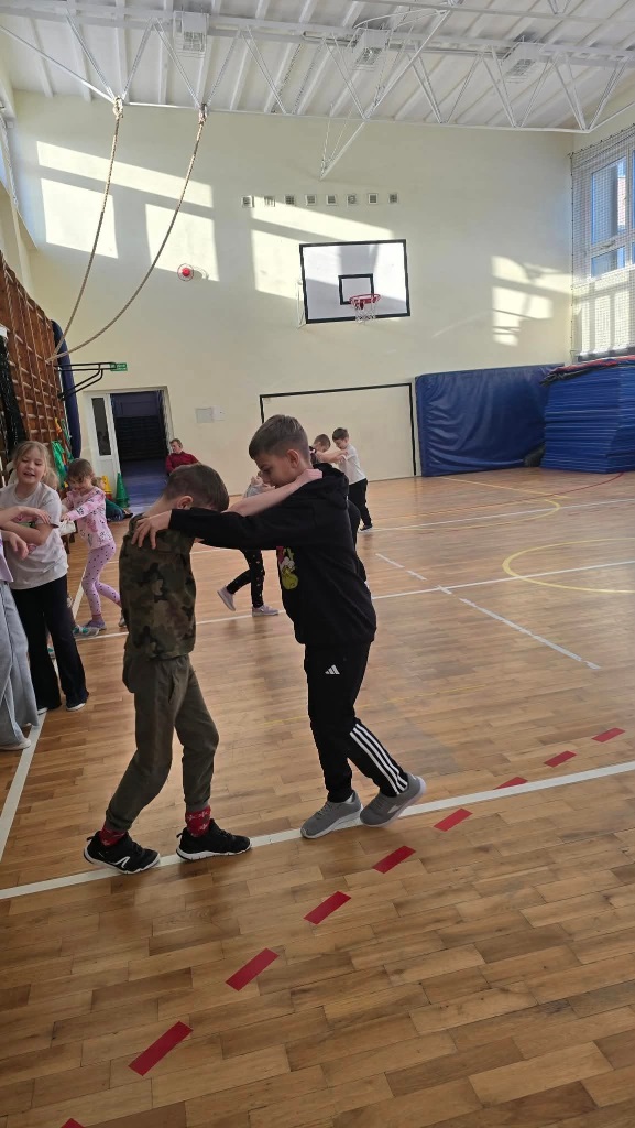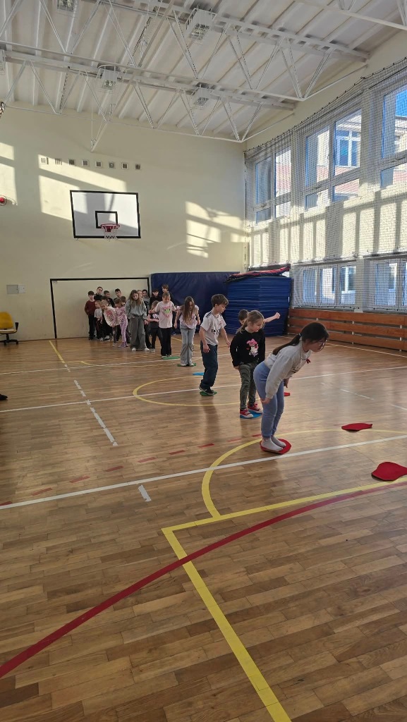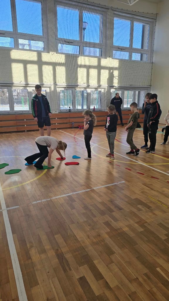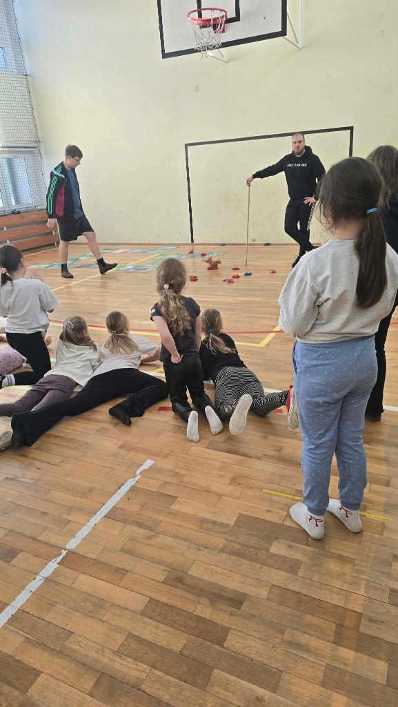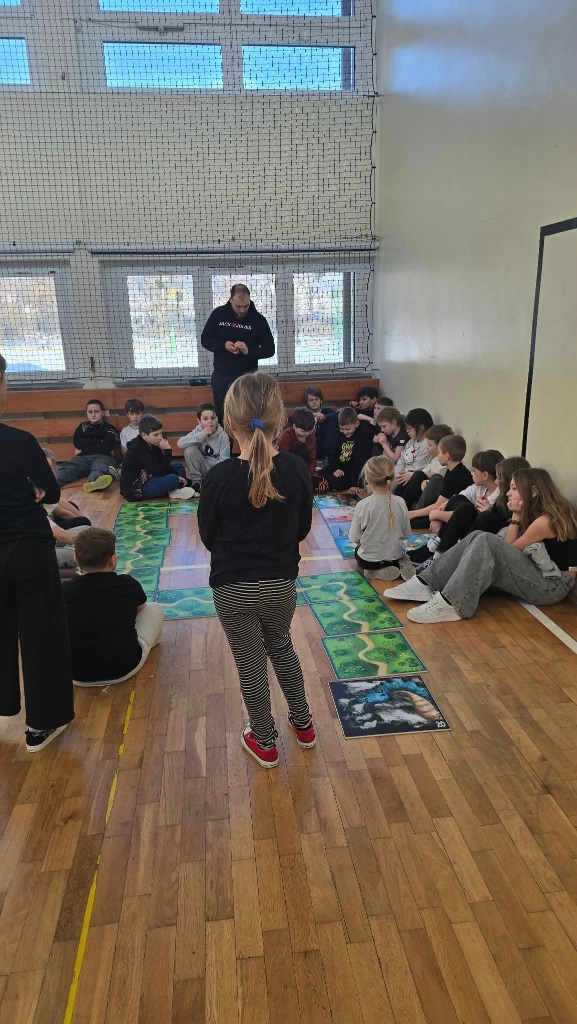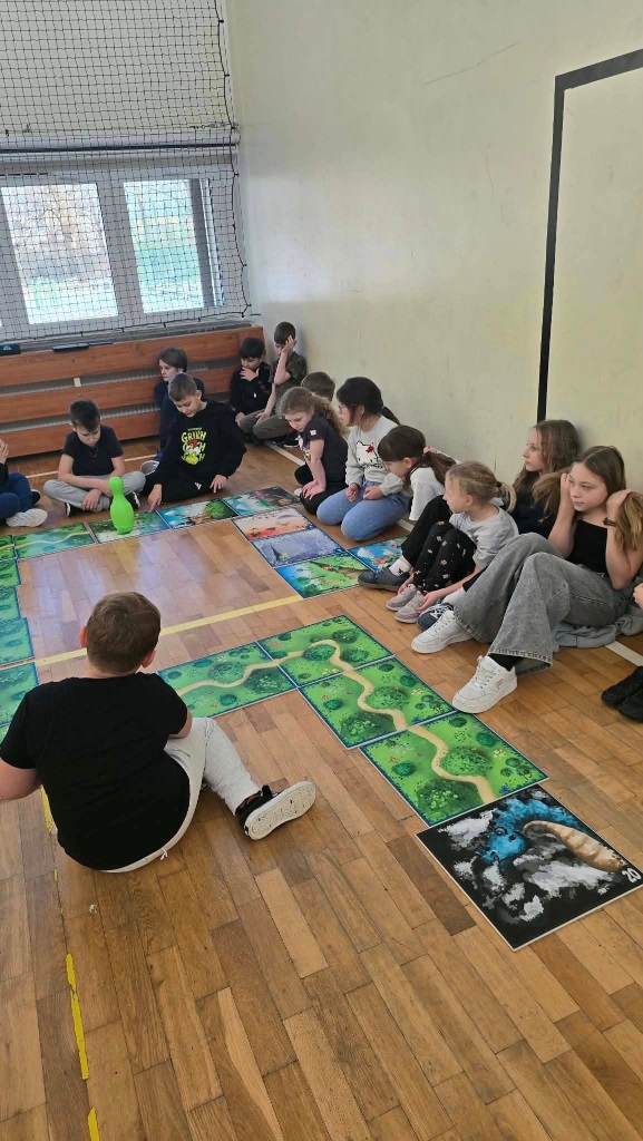 W poniedziałek do szkoły przyjechali trenerzy SMARTIST i na sali gimnastycznej przeprowadzili wielkoformatową grę planszową "W KRAINIE IMAGILANDII", w której dzieci mogły się wykazać sprytem i sportowym zacięciem.