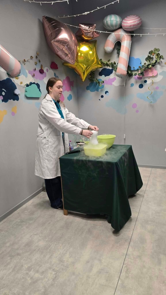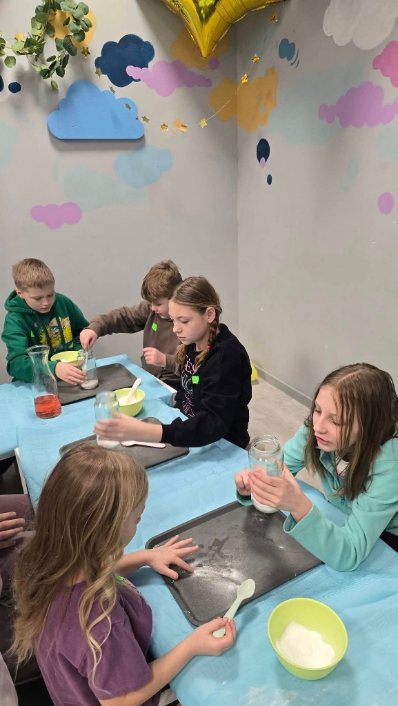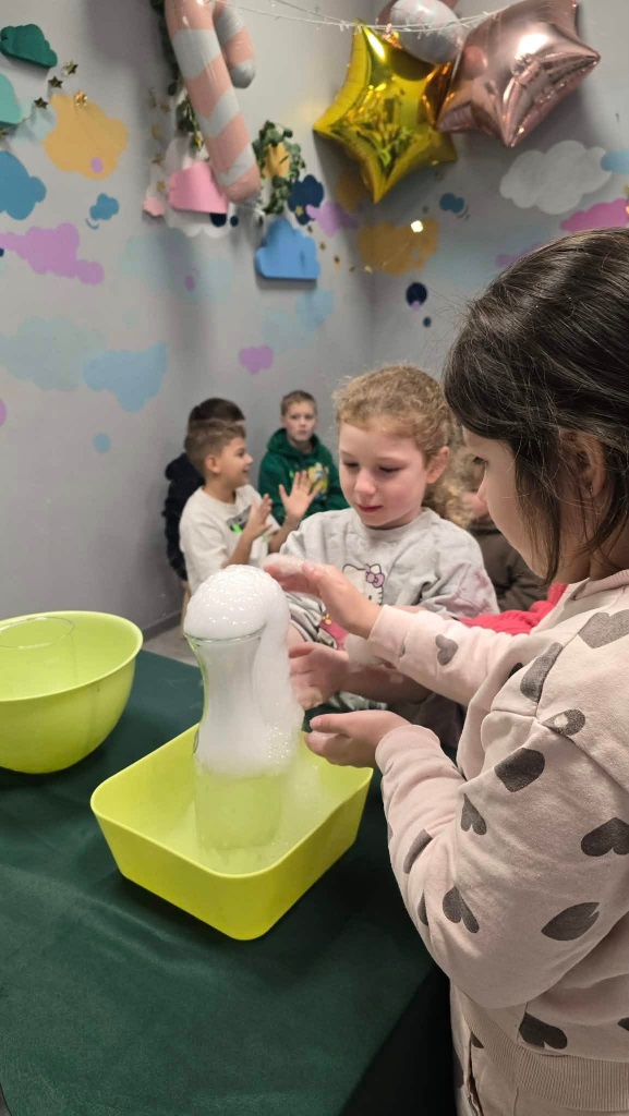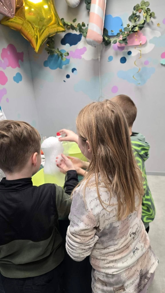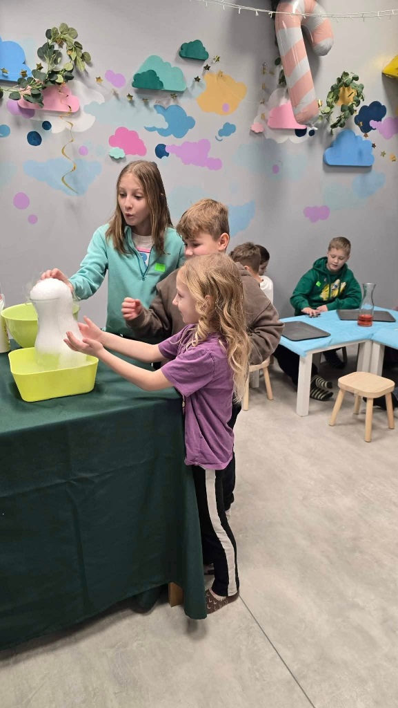 We wtorek uczestnicy półkolonii odwiedzili salę zabaw BUDUMI, w której oprócz zabawy różnymi klockami uczestniczyli w warsztach chemicznych.