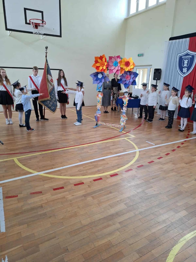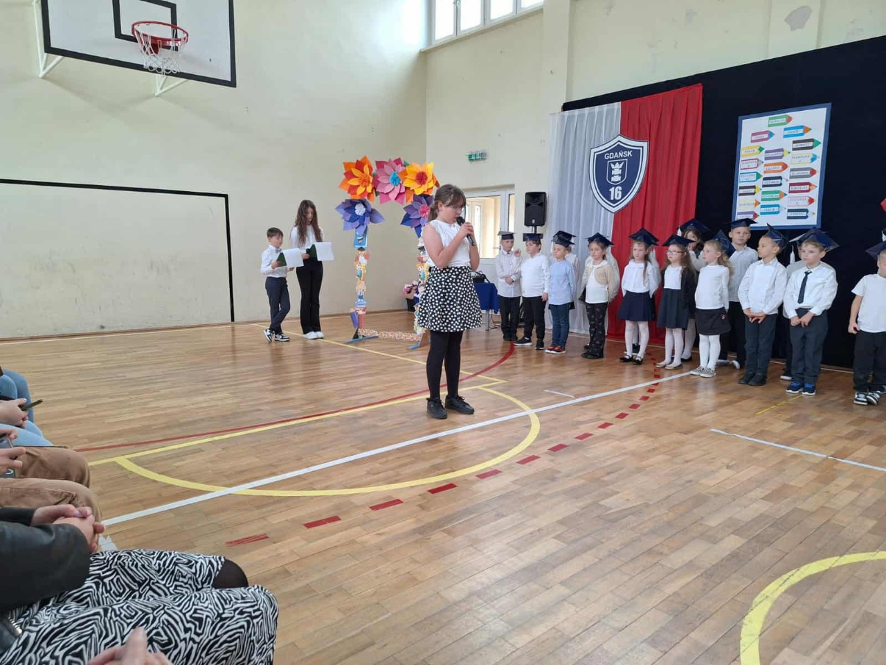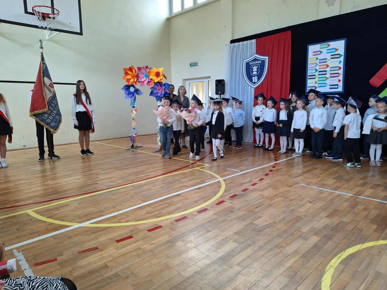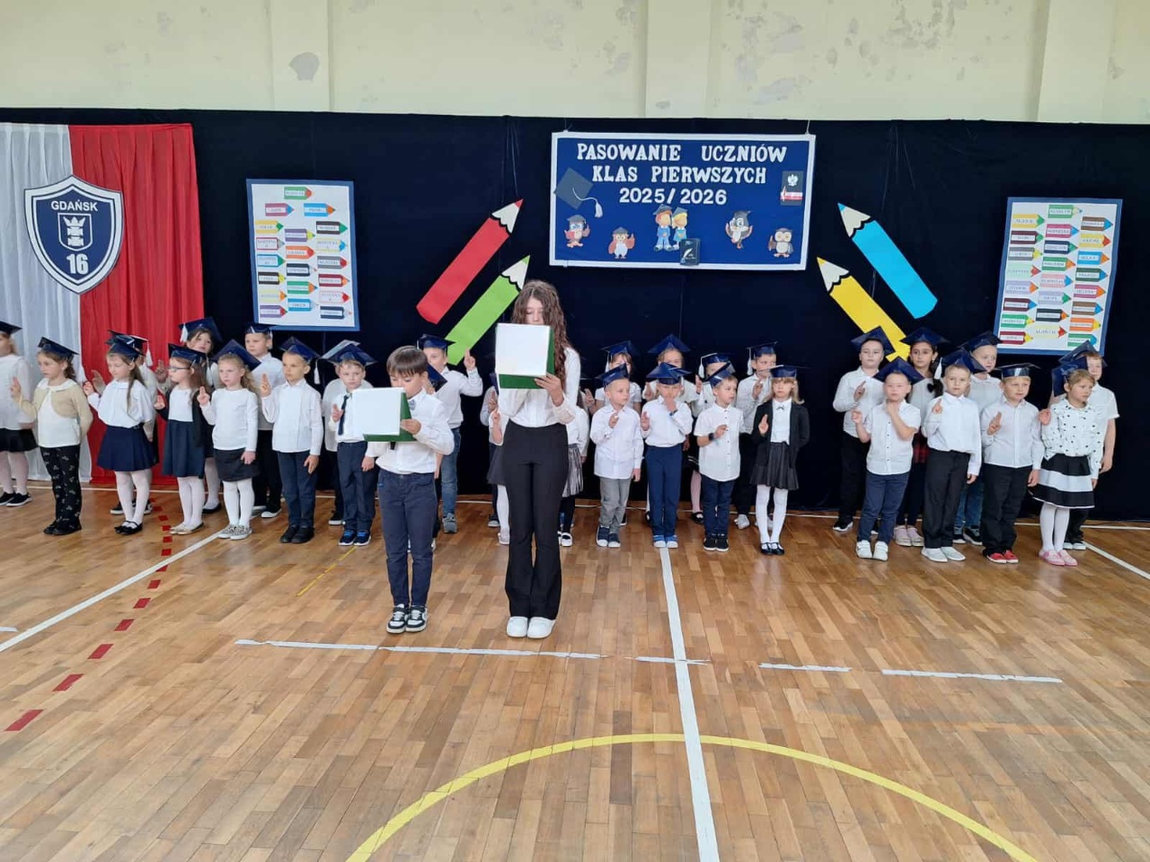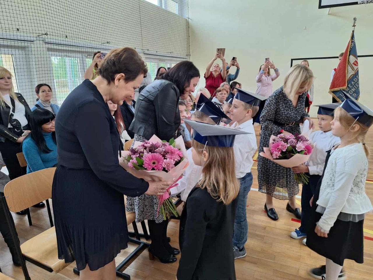 W części oficjalnej dzieci złożyły uroczyste ślubowanie, a następnie zostały pasowane na uczniów przez panią dyrektor Ninę Markiewicz- Sobieraj i panią wicedyrektor Ewę Kamrowską.